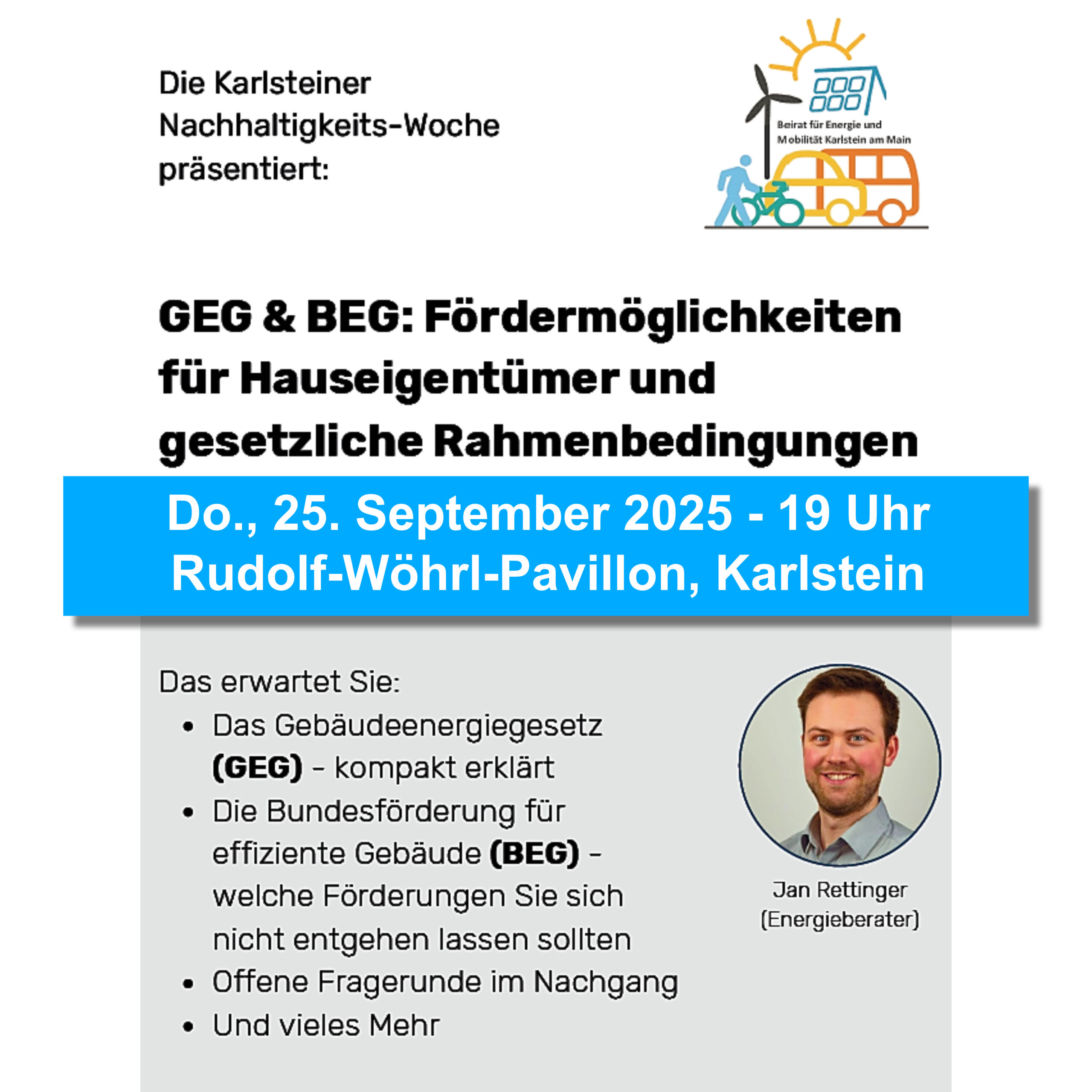 - Der Beirat setzt sich aktiv und initial mit den Themen Energie und Mobilität in Karlstein auseinander.