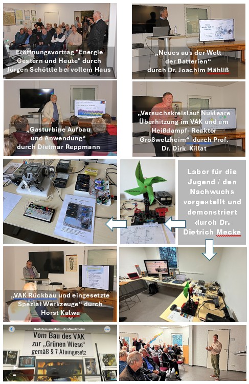 Das Energiemuseum Karlstein hatte im Rahmen des Jubiläums “50 Jahre Karlstein” an drei Tagen (26.09.2025 bis 28.09.2025) Sonderöffnungen: Angeboten wurden Museumsrundgänge, die von ehemaligen Reaktorfahrern (W. Brand u. A. Schmitt) angeboten wurden. Erklärungen zu den Themenschwerpunkten Kohleabbau durch Gewerkschaft Gustav und dem Alleinstellungsmerkmal VAK* (Versuchsatomkraftwerk Kahl) sowie zu weiteren Themen wurden angeboten. Folgende Referate waren durchweg gut besucht und die interessierten Gäste hatten ausreichend Gelegenheit, im Anschluss mit den Referenten zu „fachsimpeln“.