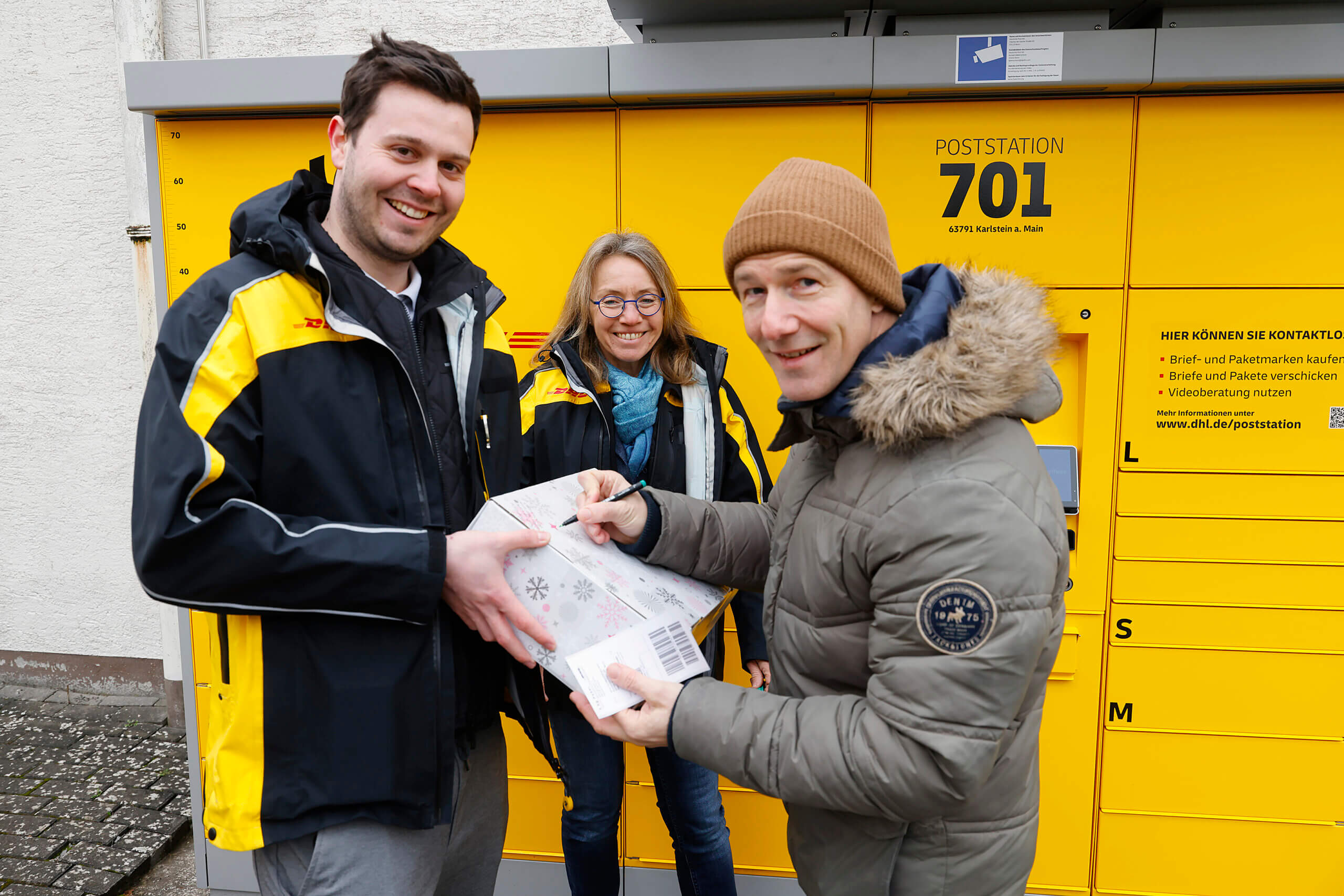 v.l.n.r.: Tim Reinhart, Gabriele Schulz (beide Deutsche Post DHL), Peter Kreß (Bürgermeister Karlstein a.Main)